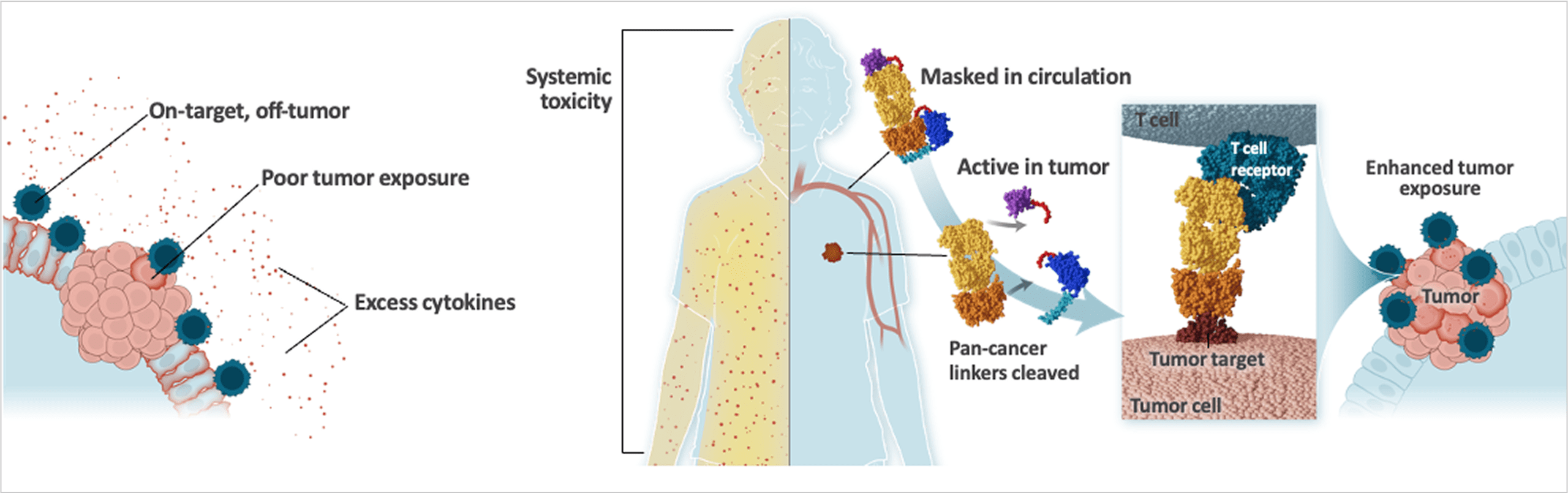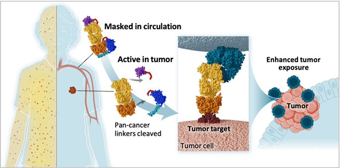 - Novel Pan-cancer Linker acts as tumor-specific switch, enabling precise unmasking and conditional activation and off-tumor effects